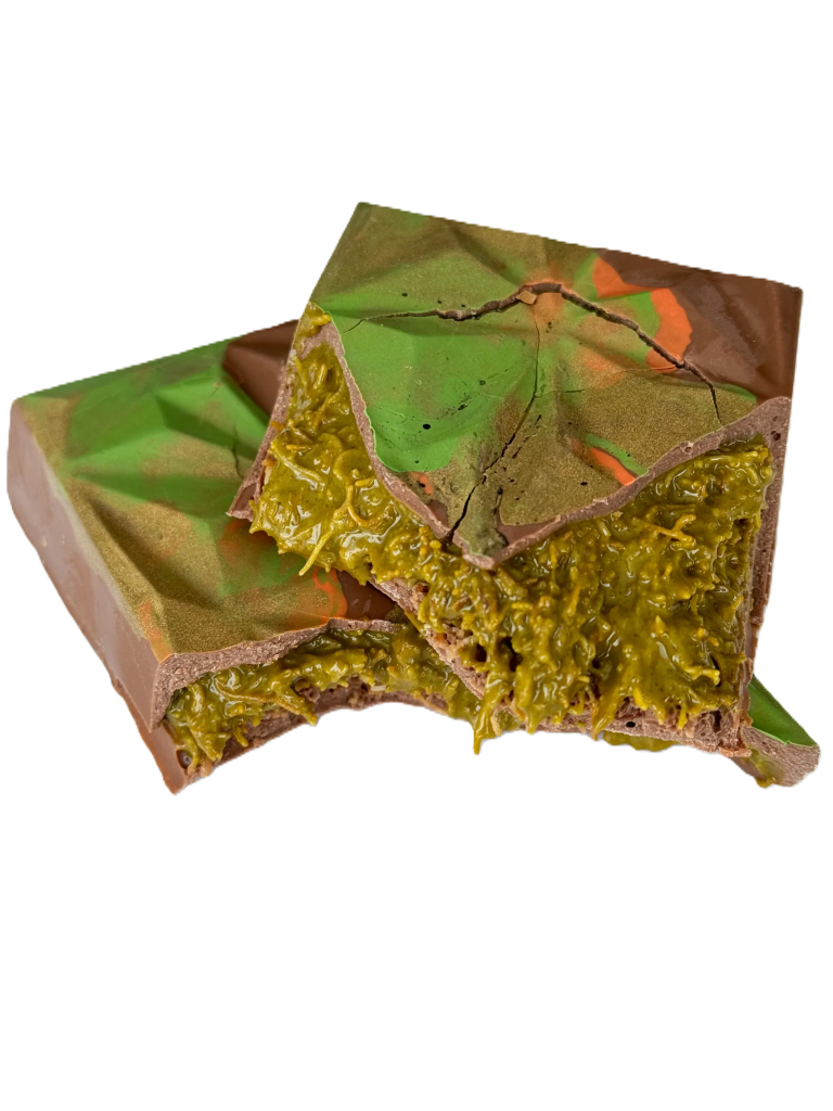 Introducing the Viral Pistachio Kataifi Chocolate Bar—a luxurious treat that combines the exotic flavors of Dubai knafeh pistachio chocolate bar with the richness of premium Belgian chocolate.